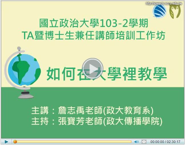 <政大演講網> 103-2「TA暨博士生兼任講師培訓工作坊」- 如何在大學裡教學